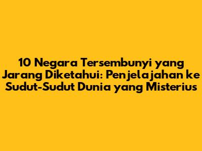 Guys, dunia ini luas banget, kan? Saking luasnya, ada banyak banget tempat yang masih jadi misteri dan jarang banget kita dengar namanya. Nah, di artikel ini, kita bakal ngulik 10 negara tersembunyi yang lokasinya bisa bikin kalian tercengang. Siap-siap buat petualangan virtual yang seru dan penuh kejutan!