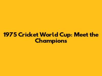 1975 Cricket World Cup: Meet The Champions