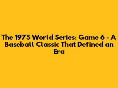 What's up, baseball fanatics! Today, we're diving deep into one of the most legendary games in World Series history: Game 6 of the 1975 World Series. This wasn't just any game; it was a pulse-pounding, extra-inning thriller that pitted the powerhouse Cincinnati Reds, also known as the "Big Red Machine," against the Boston Red Sox. For those who lived through it, or even for those who just love a good baseball yarn, this game is etched in memory. It’s a game that truly showcased the grit, the drama, and the sheer athletic brilliance that makes baseball America’s favorite pastime. We're talking about a contest that had everything: late-game heroics, controversial calls, and players digging deep when the pressure was at its absolute peak. The atmosphere was electric, the stakes couldn't have been higher, and the outcome hung in the balance until the very last out. So, grab your favorite beverage, settle in, and let's relive the magic of Game 6, 1975.