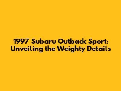 1997 Subaru Outback Sport: Weight, Specs & More!