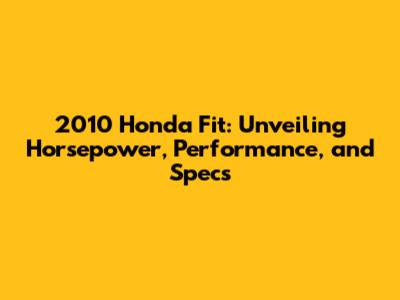 2010 Honda Fit: Horsepower, Performance, And More!