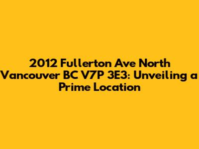 Hey there, real estate enthusiasts! Let's dive into the details of 2012 Fullerton Ave in North Vancouver, BC, V7P 3E3. This address isn't just a string of numbers and letters; it's a gateway to a fantastic lifestyle. We're going to explore everything from the property itself (though, of course, without divulging any private property data) to the neighborhood vibe, the schools, and the general convenience of living in this sought-after area. Get ready to uncover why 2012 Fullerton Ave might just be your next dream address. We will be covering various key aspects to make sure you have the best possible information about this property, and the surrounding areas. Whether you're a first-time homebuyer, an experienced investor, or simply curious about the North Vancouver real estate market, this guide is for you!