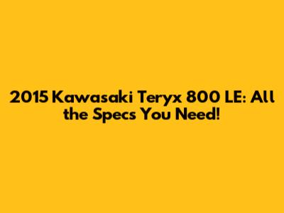 Hey guys! Ever wondered about the 2015 Kawasaki Teryx 800 LE specs? Well, you're in the right place! We're diving deep into what made this side-by-side (SxS) a beast back in the day, from its engine and suspension to its features and dimensions. Whether you're a seasoned off-roader or just starting to explore the world of powersports, this article is your go-to guide for everything Teryx 800 LE. Let's get down to business and find out what made this machine so special. Get ready to have all your questions answered, and maybe, just maybe, you'll be inspired to chase down one of these awesome machines for yourself. So, buckle up – or, in this case, strap in – and let's roll!