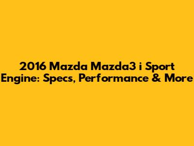 2016 Mazda3 I Sport Engine: Specs, Performance & More