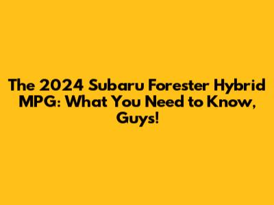 Hey there, fellow car enthusiasts and eco-conscious drivers! Today, we're diving deep into something super exciting: the 2024 Subaru Forester Hybrid MPG. If you're in the market for a vehicle that blends SUV capability with impressive fuel efficiency, you've probably got the Forester Hybrid on your radar. Subaru has always been a brand that prioritizes adventure and practicality, and with the increasing demand for greener options, the hybrid version of their beloved Forester is a pretty big deal. We're going to break down everything you need to know about its gas mileage, what factors influence it, and how it stacks up against the competition. So, grab a coffee, settle in, and let's explore the MPG magic of the 2024 Subaru Forester Hybrid! We'll be talking about real-world scenarios, potential upgrades, and what this means for your wallet and the planet. Subaru loyalists and newcomers alike are curious about this model, and for good reason. The Forester has a reputation for being a rugged, reliable companion for all sorts of journeys, from daily commutes to off-the-beaten-path excursions. Adding a hybrid powertrain to that mix promises the best of both worlds: the go-anywhere attitude you expect from Subaru, paired with fuel savings that make sense in today's world. We're not just going to throw numbers at you; we'll explain what those numbers actually mean in practical terms. Think about your weekly drives, your road trips, and how much you'll be saving at the pump. Plus, we'll touch on the technology that makes this hybrid system tick and how it contributes to that all-important MPG figure. Is it a true game-changer? Let's find out together!