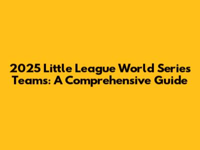 2025 Little League World Series Teams: What You Need To Know