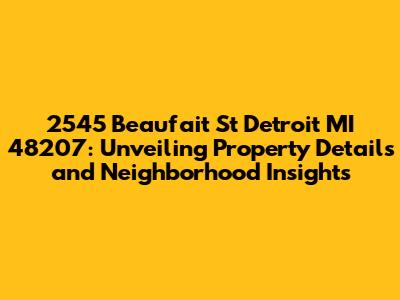 Hey there, property enthusiasts! Let's dive deep into the fascinating world of real estate, specifically focusing on the gem located at 2545 Beaufait St Detroit MI 48207. This article isn't just about a street address; it's a deep dive into the property itself, its surroundings, and everything else you might want to know. Whether you're a potential buyer, a curious investor, or just someone who loves exploring neighborhoods, this is your one-stop guide. So, grab a coffee (or your favorite beverage), and let's get started!