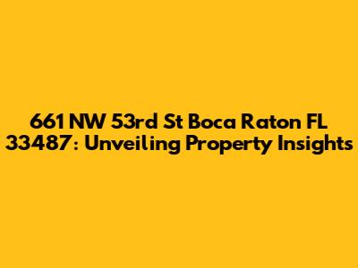 Hey there, real estate enthusiasts! Let's dive deep into the world of 661 NW 53rd St, Boca Raton, FL 33487. This isn't just a random address; it's a potential home, investment opportunity, or a piece of the Boca Raton puzzle. We're going to explore what makes this specific property tick, looking at its location, potential value, and what makes this area of Boca Raton so sought-after. Get ready for a deep dive; we're talking about everything from the neighborhood vibe to the practicalities of owning property here. Let's get started, shall we?