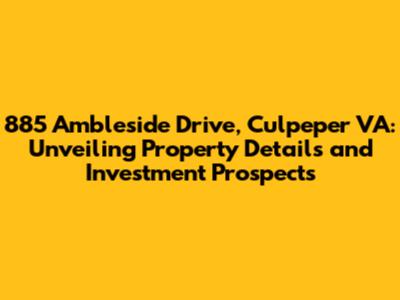 Hey everyone, let's dive into the fascinating world of real estate and take a closer look at a specific property: 885 Ambleside Drive in Culpeper, Virginia. This isn't just about listing a street address; we're going to explore what makes this location unique, its potential for homeowners, and maybe even a peek at its investment possibilities. So, grab a coffee (or your drink of choice), and let's get started!