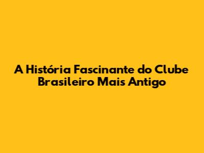 A História Fascinante Do Clube Brasileiro Mais Antigo