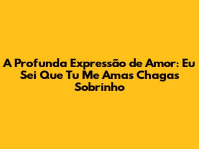 Compreender a profundidade do amor é uma jornada que nos leva por caminhos emocionais complexos e gratificantes. A expressão "Eu sei que tu me amas, Chagas Sobrinho" encapsula essa profundidade de maneira única, revelando camadas de afeto, confiança e reconhecimento. Este artigo explora o significado dessa frase, desvendando as nuances que a tornam tão especial e significativa.