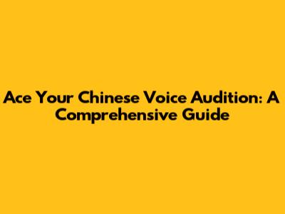 Ace Your Chinese Voice Audition: A Comprehensive Guide
