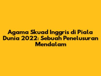 Agama pemain Inggris di Piala Dunia 2022 menjadi topik menarik untuk dibahas. Sebagai bagian dari perhelatan akbar sepak bola dunia, Piala Dunia tidak hanya menampilkan kehebatan di lapangan hijau, tetapi juga keberagaman dari berbagai aspek kehidupan, termasuk keyakinan agama para pemain. Memahami latar belakang agama para pemain memberikan kita wawasan lebih dalam tentang identitas mereka, nilai-nilai yang mereka anut, dan bagaimana hal itu mungkin memengaruhi performa mereka di lapangan. Dalam artikel ini, kita akan menjelajahi lebih jauh tentang agama yang dianut oleh para pemain timnas Inggris yang berlaga di Piala Dunia 2022, memberikan gambaran komprehensif tentang keragaman keyakinan dalam skuad tersebut.
