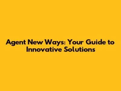 Agent New Ways: Your Guide To Innovative Solutions