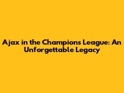 Ajax In The Champions League: An Unforgettable Legacy