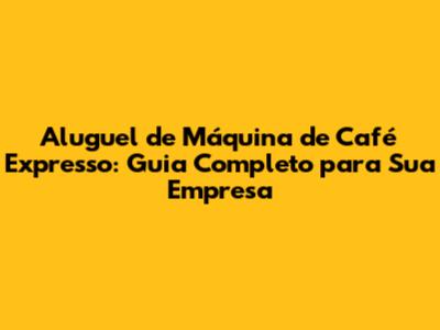 Aluguel de máquina de café expresso é uma solução inteligente e vantajosa para empresas de todos os tamanhos. Se você está pensando em oferecer um café de qualidade aos seus funcionários, clientes ou em eventos, este guia completo vai te mostrar tudo o que você precisa saber sobre o aluguel de máquinas de café expresso. Vamos explorar os benefícios, tipos de máquinas, como escolher a ideal e muito mais. Prepare-se para se tornar um expert no assunto!