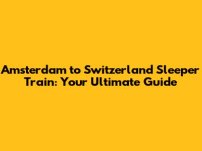 Amsterdam To Switzerland Sleeper Train: Your Ultimate Guide
