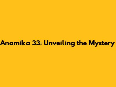 Anamika 33: Unveiling The Mystery