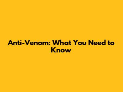 Anti-Venom: What You Need To Know