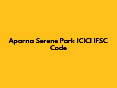 Aparna Serene Park ICICI IFSC Code: Find It Here!