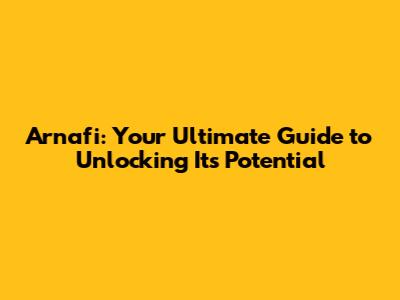 Why Arnafi is a Must-Have for Your [Relevant Area]