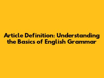 Article Definition: Understanding The Basics Of English Grammar