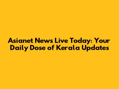 Asianet News Live Today: Your Daily Dose Of Kerala Updates