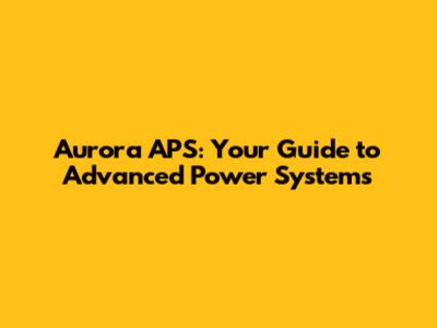 Aurora APS: Your Guide To Advanced Power Systems