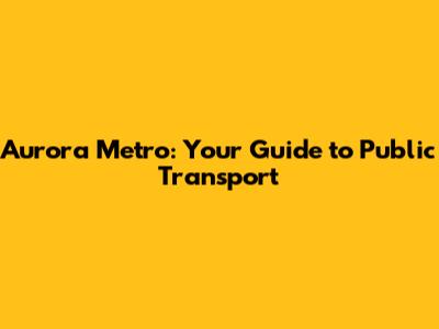 Aurora Metro: Your Guide To Public Transport