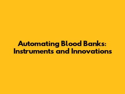 Automating Blood Banks: Instruments And Innovations