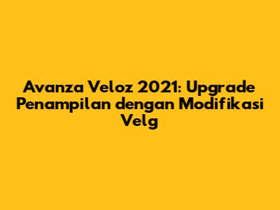 Modifikasi velg adalah cara yang efektif untuk meningkatkan tampilan dan performa Avanza Veloz 2021 Anda. Dengan memilih velg yang tepat, Anda bisa membuat mobil Anda terlihat lebih sporty, elegan, atau bahkan off-road, sesuai dengan gaya pribadi Anda. Jangan lupa untuk mempertimbangkan aspek keselamatan dan kenyamanan berkendara, serta melakukan perawatan yang tepat untuk menjaga tampilan dan performa velg.