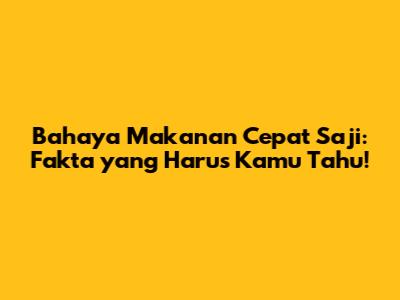 Bahaya Makanan Cepat Saji: Fakta Yang Harus Kamu Tahu!