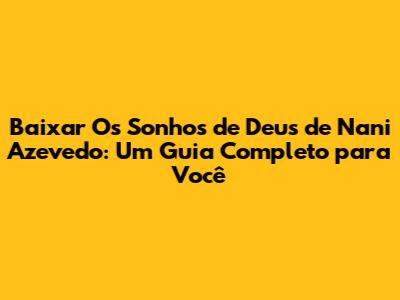 Baixar 'Os Sonhos De Deus' De Nani Azevedo: Guia Completo