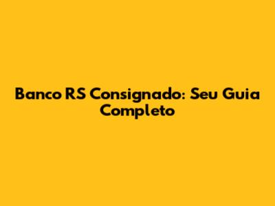 O Que é o Banco RS Consignado?