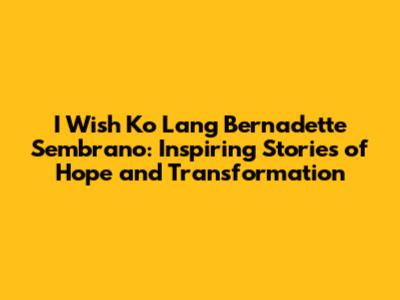 Hey guys! Ever caught an episode of "I Wish Ko Lang" hosted by the amazing Bernadette Sembrano? If not, you're seriously missing out. This show isn't just your typical feel-good program; it's a powerful platform that showcases incredible stories of hope, resilience, and transformation. Bernadette Sembrano, with her genuine empathy and heartfelt approach, brings these stories to life, making each episode a truly unforgettable experience. Let's dive into why "I Wish Ko Lang" is such a beloved show and how Bernadette Sembrano's touch makes all the difference.
