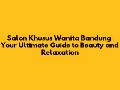 Finding the perfect salon khusus wanita di Bandung is about more than just aesthetics; it's about creating a holistic experience that nurtures your mind, body, and soul. These salons are designed to be safe spaces where women can connect, relax, and empower each other. So next time you're in Bandung, be sure to check out one of these amazing salons and experience the difference for yourself. You might just discover your new favorite place to unwind and rejuvenate!