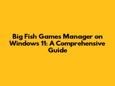 Big Fish Games Manager On Windows 11: A Comprehensive Guide
