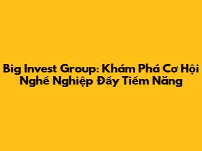 Big Invest Group: Cơ Hội Nghề Nghiệp Hấp Dẫn