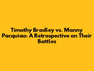 Hey guys, let's dive into the captivating rivalry between two boxing legends: Timothy Bradley and Manny Pacquiao. Their clashes in the ring weren't just matches; they were epic sagas filled with drama, controversy, and unforgettable moments. Buckle up as we revisit each of their encounters, dissecting the strategies, the controversies, and the lasting impact these fights had on the boxing world. We'll explore the nuances of each bout, offering insights and analysis that will reignite your passion for this incredible rivalry. This is more than just a recap; it's a deep dive into what made these fights so special and why they continue to be talked about today.