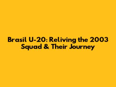 Brasil U-20: Reliving The 2003 Squad & Their Journey