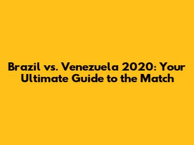 Hey guys, are you ready for a football showdown? We're diving deep into the Brazil vs. Venezuela 2020 match! This guide is your one-stop shop for everything you need to know, from where to watch the live stream to the latest news and analysis. Get ready to gear up for an exciting match with two national teams facing off. Let's get into it!