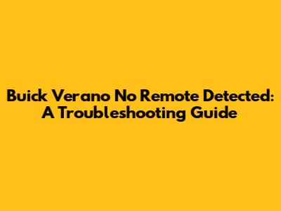 Hey there, fellow Buick Verano owners! Ever found yourselves staring at your car, remote in hand, with that sinking feeling of 'Buick Verano no remote detected'? It's a frustrating situation, but thankfully, not always a sign of impending doom. Let's dive into this common issue, explore why it happens, and arm you with the knowledge to get back on the road. We're going to break down the most common culprits, from dead batteries to more complex electrical gremlins, and give you practical solutions to try. No need to feel stranded; we’re in this together. This guide is designed to be your go-to resource, offering straightforward advice and helping you troubleshoot like a pro. So, grab a coffee (or your beverage of choice), and let's get started.