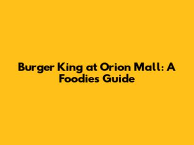 Burger King At Orion Mall: A Foodie's Guide