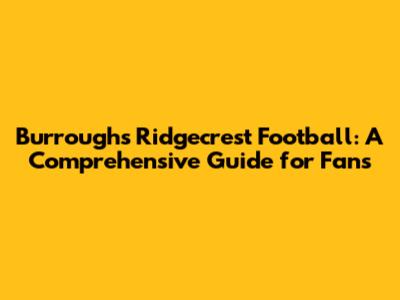 Hey football fanatics! Are you ready to dive headfirst into the exciting world of Burroughs Ridgecrest Football? Get ready for a thrilling ride, because we're about to explore everything you need to know about this fantastic team. From their history and achievements to the players, coaches, and upcoming games, this is your ultimate guide to all things Burroughs football. So, grab your jerseys, fire up your team spirit, and let's get started!
