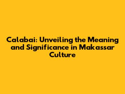 Hey everyone! Today, we're diving deep into the fascinating world of Makassar culture and exploring a term that often sparks curiosity: calabai. So, what exactly does calabai mean in the Makassar language, and what role does it play in their society, guys? Get ready to have your questions answered and your understanding expanded! This journey will take us through the historical context, cultural nuances, and the contemporary relevance of calabai. Understanding calabai goes beyond a simple definition; it's about appreciating a unique aspect of Makassar identity. Let's get started, shall we?