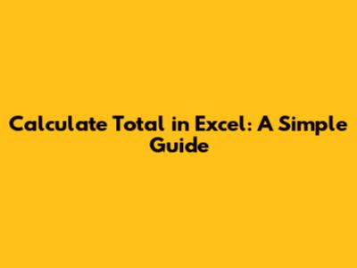 Calculate Total In Excel: A Simple Guide