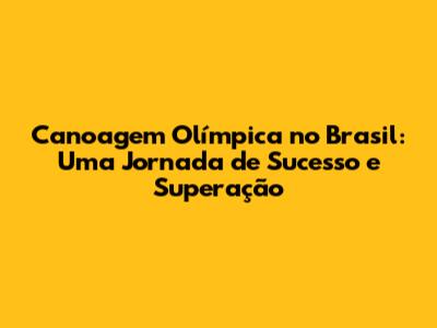 O Futuro da Canoagem Olímpica Brasileira: Desafios e Perspectivas