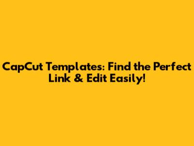 CapCut Templates: Find The Perfect Link & Edit Easily!