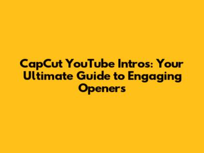 CapCut YouTube Intros: Your Ultimate Guide To Engaging Openers
