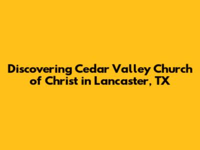 Hey everyone! Today, we're diving deep into a place that's become a cornerstone for many in the Lancaster, Texas area: the Cedar Valley Church of Christ. If you're searching for a community that emphasizes faith, fellowship, and a genuine connection to spiritual teachings, you've come to the right spot. This article is all about exploring what makes Cedar Valley Church of Christ in Lancaster, TX, so special, from its core beliefs to its impact on the local community. We'll be chatting about their services, their outreach programs, and why so many people find solace and purpose within its walls. So grab a coffee, get comfy, and let's explore this wonderful church together. We'll make sure to cover everything you might want to know, guys, so you can get a real feel for this vibrant congregation. Whether you're a long-time resident, new to the area, or just curious, we've got the lowdown on Cedar Valley Church of Christ, Lancaster, TX.